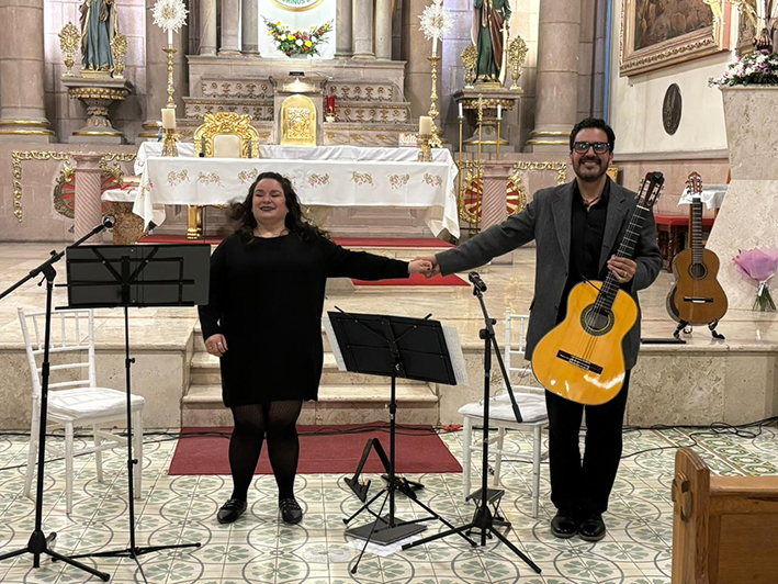 Soledad de Graciano Sánchez, SLP.- Las notas del barroco volvieron a resonar entre los muros centenarios de la Parroquia de Nuestra Señora de la Soledad durante una velada artística que conmovió al público, al reunir la voz de Irene Martínez y la interpretación del maestro Juan Pablo Rivera, integrantes del dueto Pulchra Sonus.