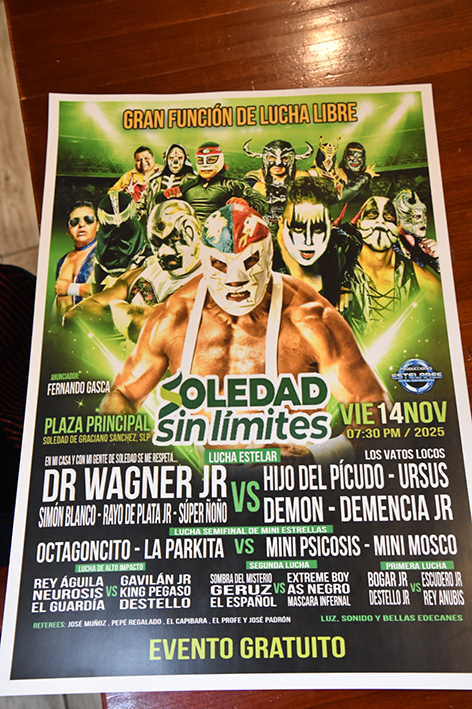 Soledad de Graciano Sánchez, SLP.- Las luces, la emoción y los gritos de la afición están listos para encender el corazón de Soledad de Graciano Sánchez, este viernes 14 de noviembre, cuando la Plaza principal se transforme en un verdadero cuadrilátero.
