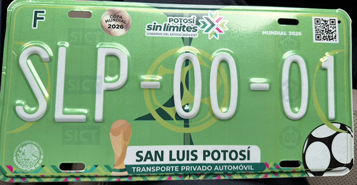 San Luis Potosí, SLP.- El Gobernador de San Luis Potosí, Ricardo Gallardo Cardona, anunció que el Estado tendrá placas vehiculares conmemorativas del Mundial 2026, tres modelos de edición especial y limitada que únicamente estarán disponibles durante ese año, como un recuerdo del máximo evento deportivo que se realizará en México, Canadá y Estados Unidos.