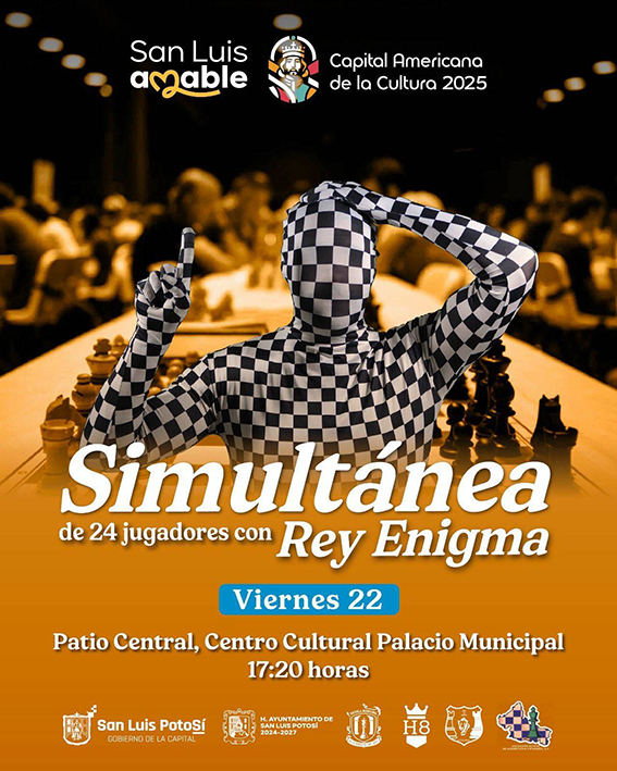 “Blitz con Rey Enigma” con los ganadores del 1er lugar de cada categoría y posteriormente “Simultánea con Rey Enigma” con los 16 mejores participantes del torneo.ó que siempre llevará a San Luis Potosí en el corazón.