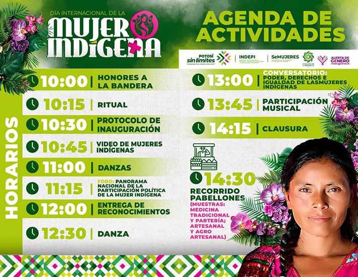 Huasteca Potosina, SLP.- La Secretaría de las Mujeres e Igualdad Sustantiva (Semujeres), realizará un evento conmemorativo por el Día Internacional de la Mujer Indígena, el viernes próximo a las 10:00 horas en Coxcatlán.