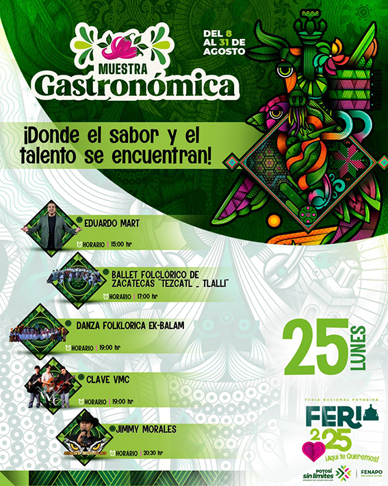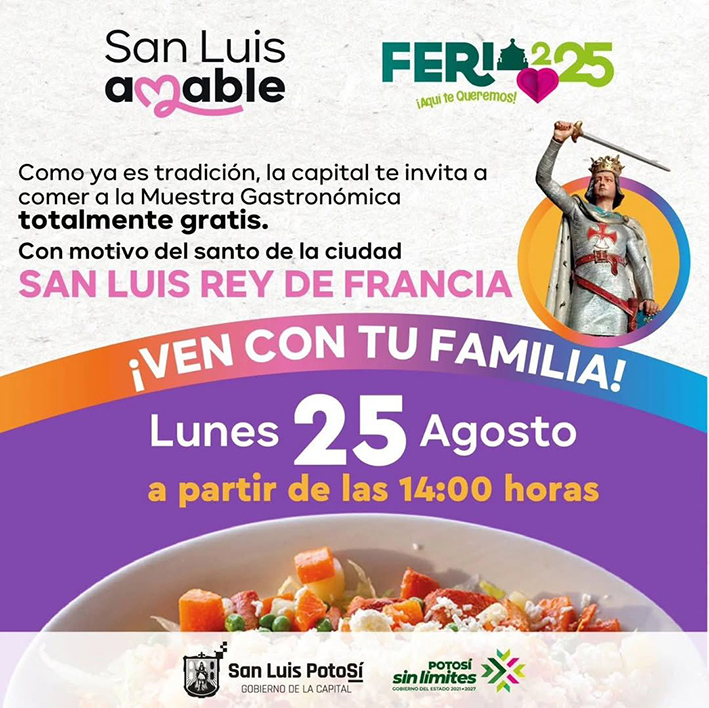 San Luis Potosí, SLP.- La Feria Nacional Potosina 2025 celebrará este lunes 25 de agosto el Día de la Garnacha de la capital, en honor a San Luis Rey de Francia, una fiesta gastronómica que patrocina el Ayuntamiento de la Capital, y que reunirá a las familias en torno a los sabores, la tradición y la alegría potosina