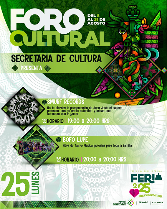 El Pabellón de Pueblos Mágicos cerrará con ambiente festivo gracias a la Banda La Gloria de Jerez, Zacatecas, al tiempo que el Foro Cultural frente a Jacksons se convertirá en escaparate de propuestas frescas como Smurf Records, Bofo Lupe con su teatro musical, y el talento de Clave VMC y Jimmy Morales. Con este lunes de Garnacha, la Fenapo refrenda su espíritu de convivencia, ofreciendo experiencias únicas y una celebración sin límites en cada rincón del recinto ferial.