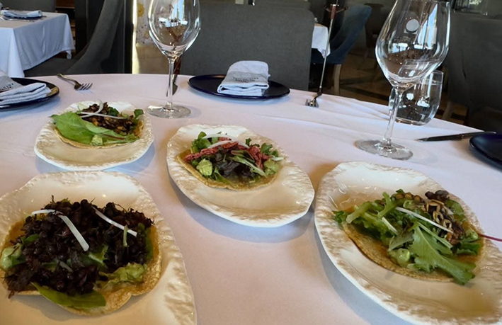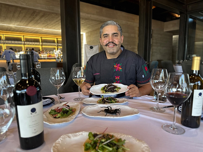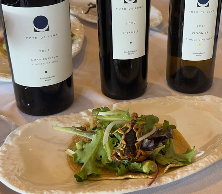 El reconocido viñedo como de los mejores de su clase a nivel nacional e internacional, incorporó en su menú once platillos con insectos preparados por el chef Guillermo Espinoza Barba, para los visitantes que desean tener una aventura gastronómica que mezcla esa tradición prehispánica con la sofisticación del vino y la cocina moderna.